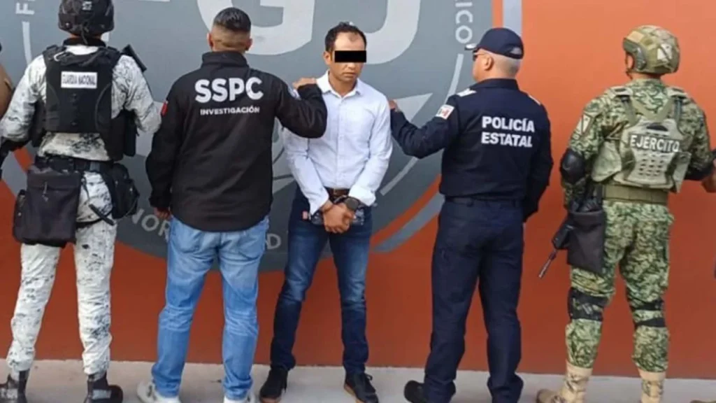 Ciudad de Mexico, 15 de marzo de 2026.- Elementos de la Secretaría de Seguridad y Protección Ciudadana (SSPC), en coordinación con la Marina, el Ejército, la Guardia Nacional, la Fiscalía General de la República y la Fiscalía del Estado de México, capturaron este 14 de marzo a José Armando N, alias ‘El Callejas’ o ‘Comandante Callejas’, identificado como líder de una célula criminal dedicada a extorsión, delitos contra la salud, robo a transporte y robo de hidrocarburo en la entidad mexiquense. El operativo se ejecutó en el municipio de San Juan Totolac, Tlaxcala, luego de que una denuncia ciudadana por extorsión a un restaurante permitiera ubicarlo.