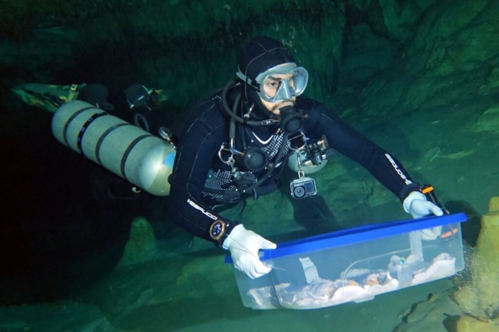 Ciudad de Mexico, 02 de abril de 2026.- El Instituto Nacional de Antropología e Historia (INAH) informó el traslado de fósiles humanos descubiertos en 2022 y recuperados a finales de 2025 en el sistema de ríos subterráneos Sac Actun, Quintana Roo, hacia la Sección de Bioarqueología de la Dirección de Salvamento Arqueológico en la capital del país.