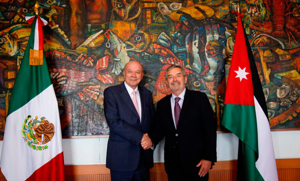 El canciller agradeció a Jordania por el apoyo para facilitar las evacuaciones de las y los connacionales que se encontraban en lugares de conflicto del Medio Oriente durante estas últimas semanas. El encuentro estuvo acompañado por la subsecretaria de Relaciones Exteriores, María Teresa Mercado, el presidente de la Comisión de Relaciones Exteriores del Senado, Alejandro Murat y el director general de Coordinación Política, Pedro Matar.