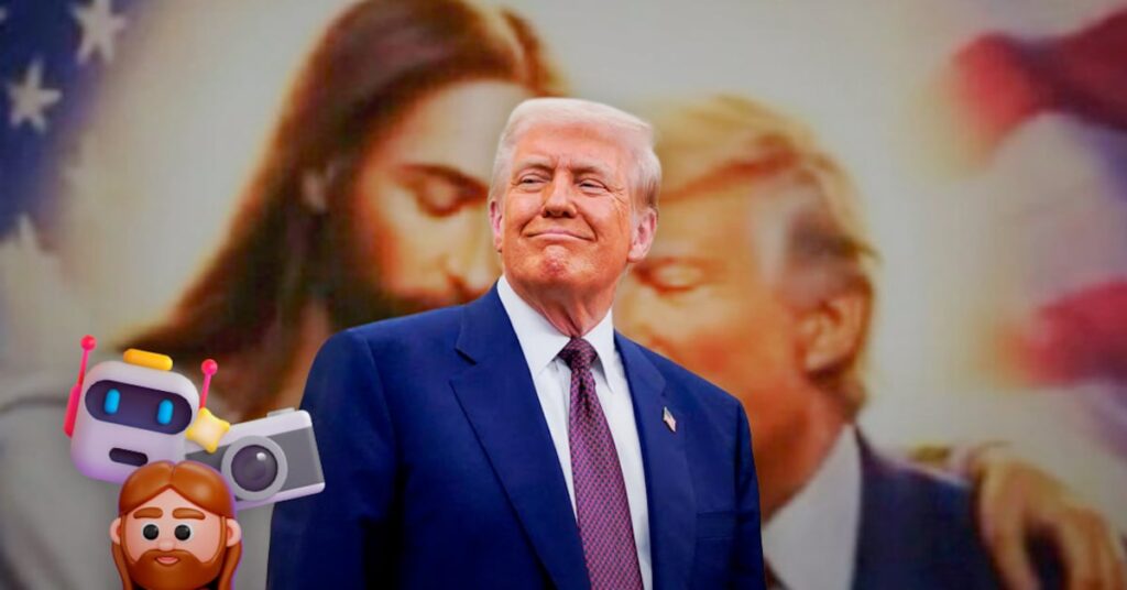 Ciudad De México, 16 de abril de 2026.- Donald Trump compartió una imagen generada con inteligencia artificial en la que aparece abrazado por Jesucristo frente a una bandera de Estados Unidos. La imagen fue difundida en la red Truth Social del presidente, quien comentó: “Puede que a los lunáticos de la izquierda radical no les guste esto, ¡pero a mí me parece bastante genial!”.